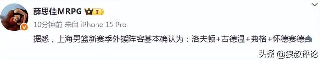 媒体人:上海男篮新赛季外援阵容确认,怀特塞德为第四名外援